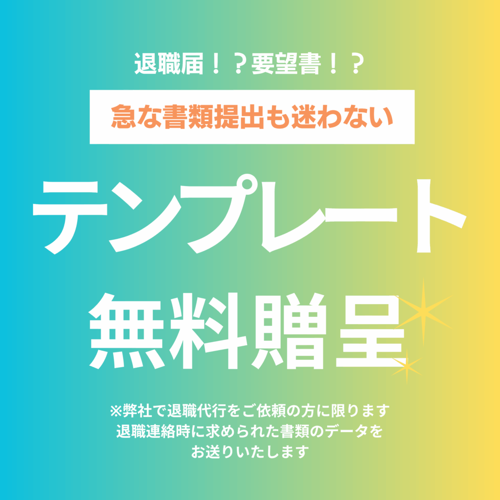 退職届や要望書などの各種書類が必要となった場合、弊社監修のオリジナルテンプレートを無料でプレゼントいたします。