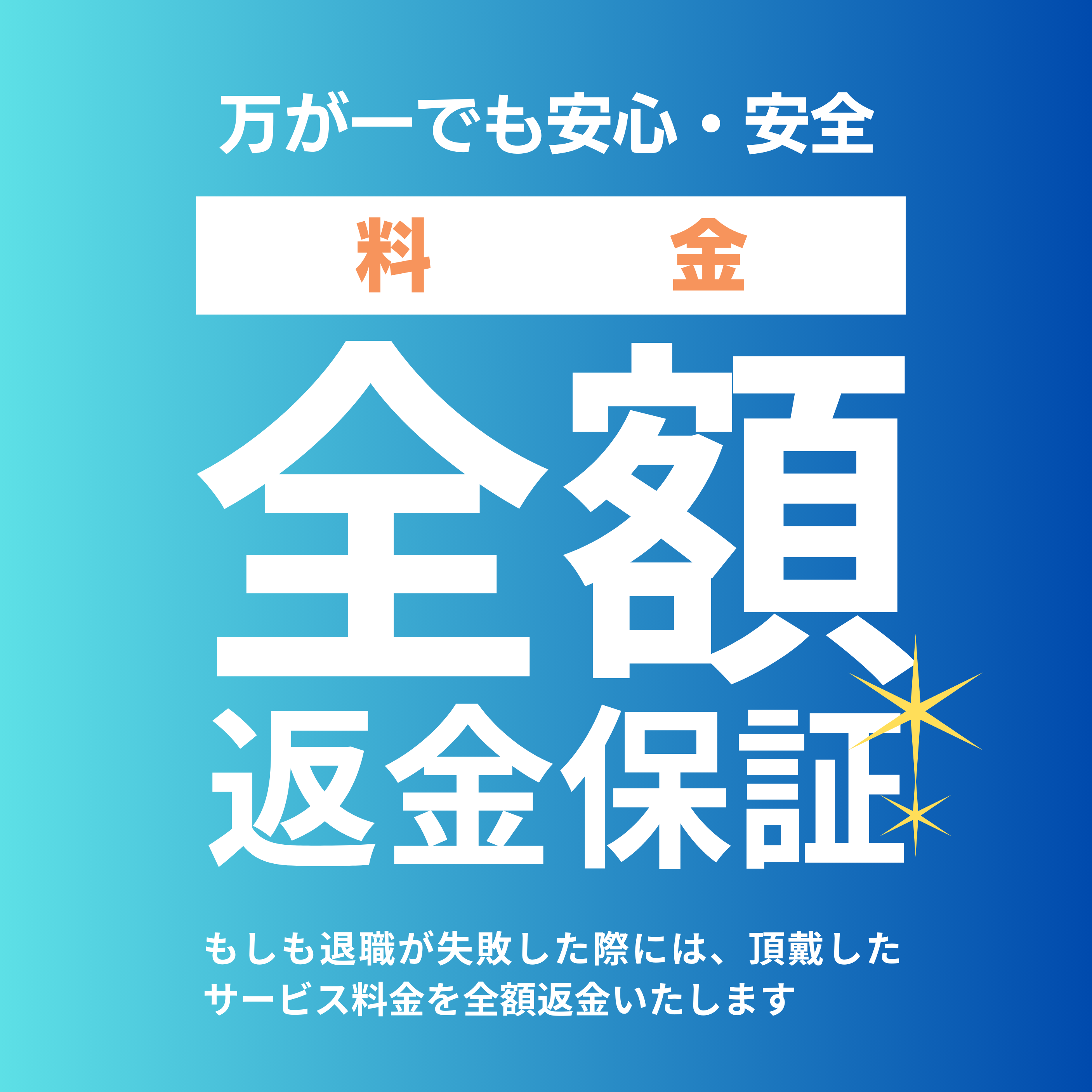 ご安心して利用頂きたいため、万が一希望通りに退職できなかった場合は全額返金いたします。